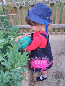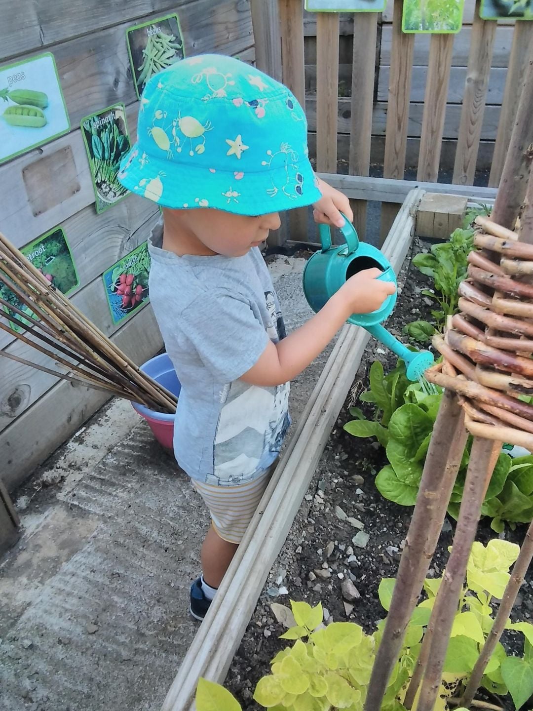Under the watchful eye of our chief gardener Kelly, the children have loved planting and now looking after all of the vegetables in our allotment area. We look carefully and talk about the changes we notice every day and can’t wait to eventually eat them!![]()